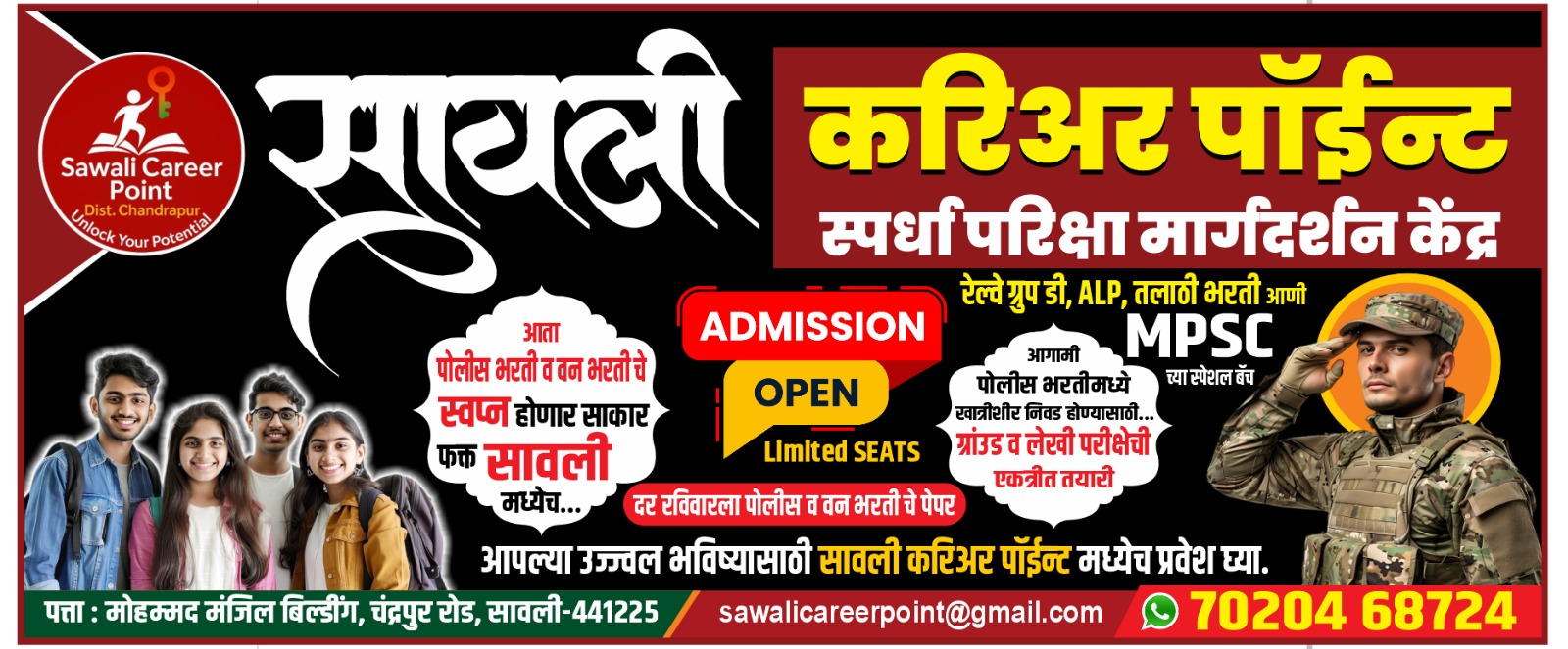 सावली करिअर पॉईंटकडून सावली तालुक्यातील विद्यार्थ्यांसाठी मोफत स्पर्धा परीक्षा प्रशिक्षणाची सुवर्णसंधी