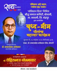 या दिवसाचे औचित्य साधून बौद्ध समाज कमेटी बोथली द्वारे आयोजित आणि साथ फाउंडेशनच्या सौजन्याने दि.२६ नोव्हें.२०२५ रोज बुधवारला डॉ ‌.बाबासाहेब आंबेडकर चौक,बोथली येथे सायं.७.००वा. सुप्रसिद्ध गायक मुकेश कुमार प्रस्तुत बुद्ध भिम गितांचा बहारदार कार्यक्रम आयोजित करण्यात आला आहे.सदर कार्यक्रमांचे उद्घाटन रोहित बोम्मावार , संचालक चंद्रपूर जिल्हा मध्यवर्ती सहकारी बँक तथा अध्यक्ष साथ फाऊंडेशन यांच्या हस्ते होणार आहे.
